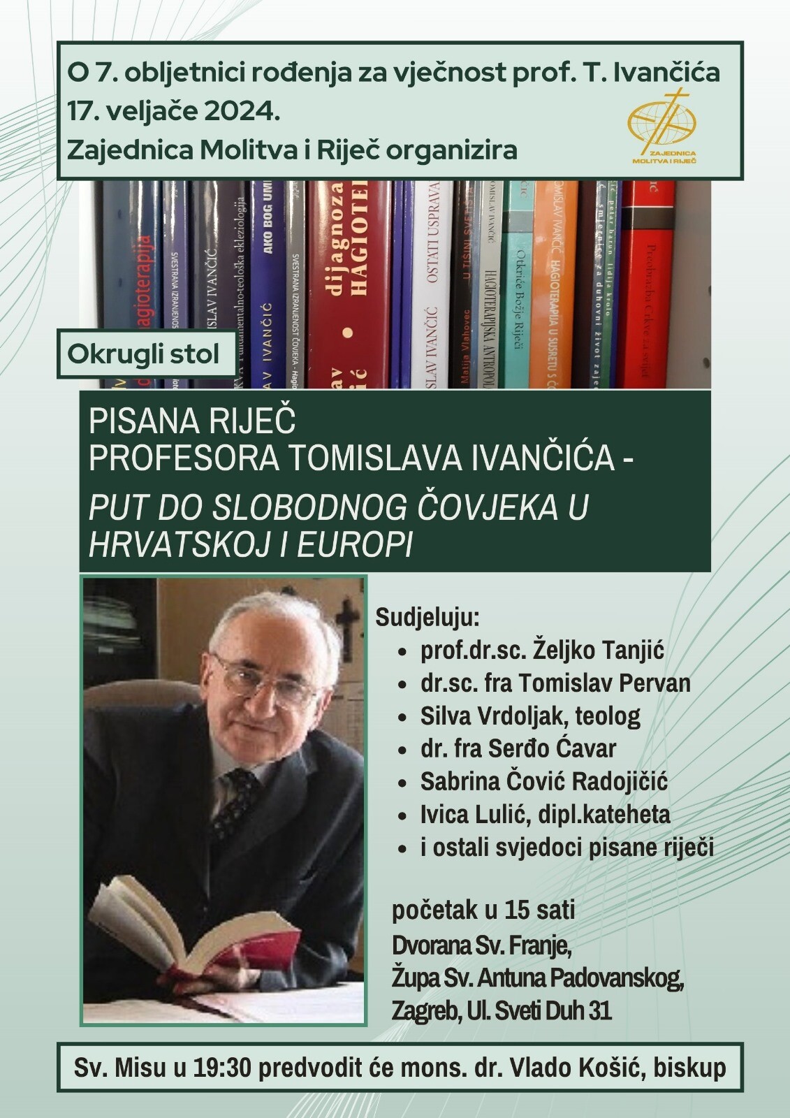 U subotu 17. veljače u župi Sv. Antuna Padovanskog, dvorana sv. Franje s početkom u 15 sati Zajednica Molitva i Riječ obilježava 7. obljetnicu preminuća prof. Tomislava Ivančića. U znak […]