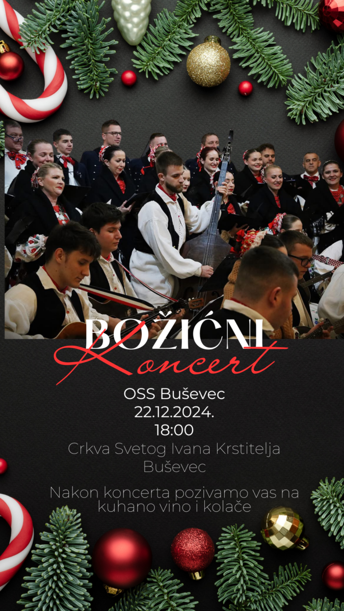 Želite li si za Božićne blagdane pokloniti nekaj lijepo, nekaj kaj vam bude za dušu dojdite onda u nedjelju 22. prosinca u 18 sati u Crkvu Svetog Ivana Krstitelja Buševec gdje će vas svojim koncertom počastiti članovi vokalne i tamburaške A-skupine Ogranka Seljačke sloge Buševec. Svojom svirkom i pjesmom provest će vas cijelom Lijepom našom, a da bismo u tome uspjeli pomogli su nam vrhunski hrvatski vokalni i tamburaški voditelji: Joško Čaleta, Tomislav Habulin, Andor Vegh, Valentina Šepak Molnar i Zoran Jakunić, koji su cijeli koncert osmislili i uvježbali.