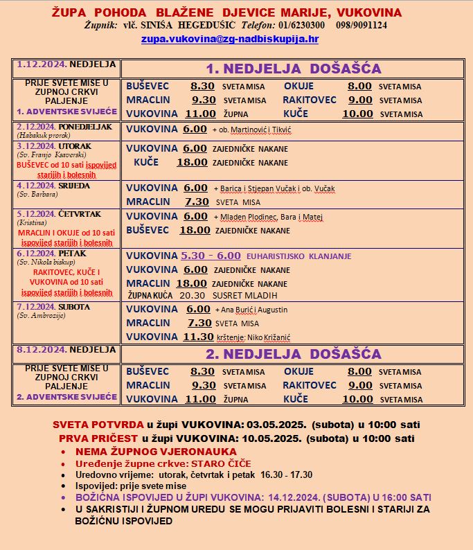 Dostupan je novi župni listić od 1. do 8. prosinca 2024. s raporedom misa, vjeronauka i ostalim informacijama. Župa PBDMzupa-pbd-marije.hr