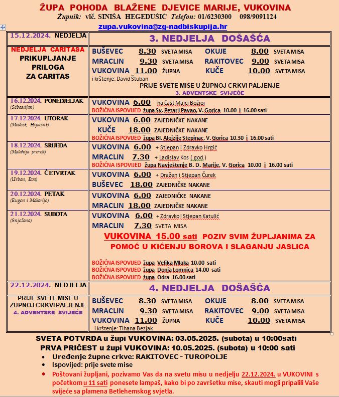 Dostupan je novi župni listić od 14. do 22. prosinca 2024. s raporedom misa i ostalim informacijama. Župa PBDMzupa-pbd-marije.hr