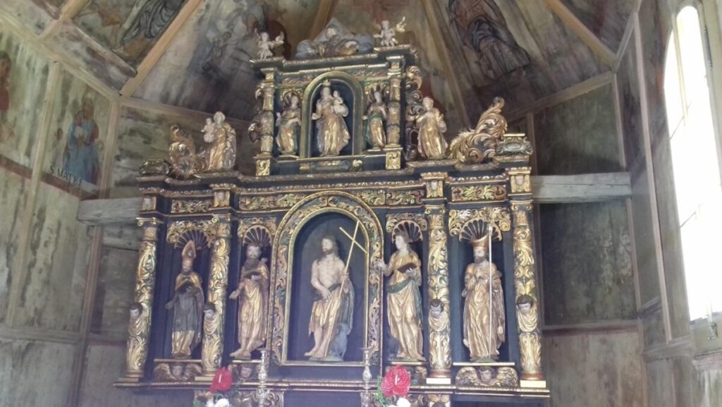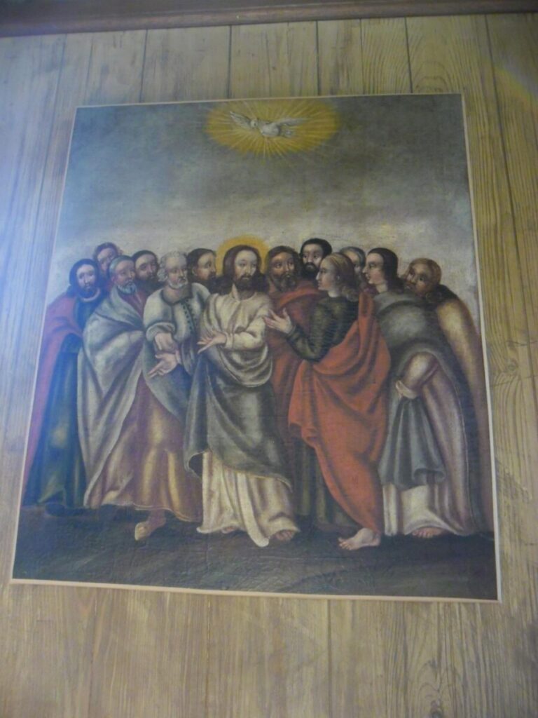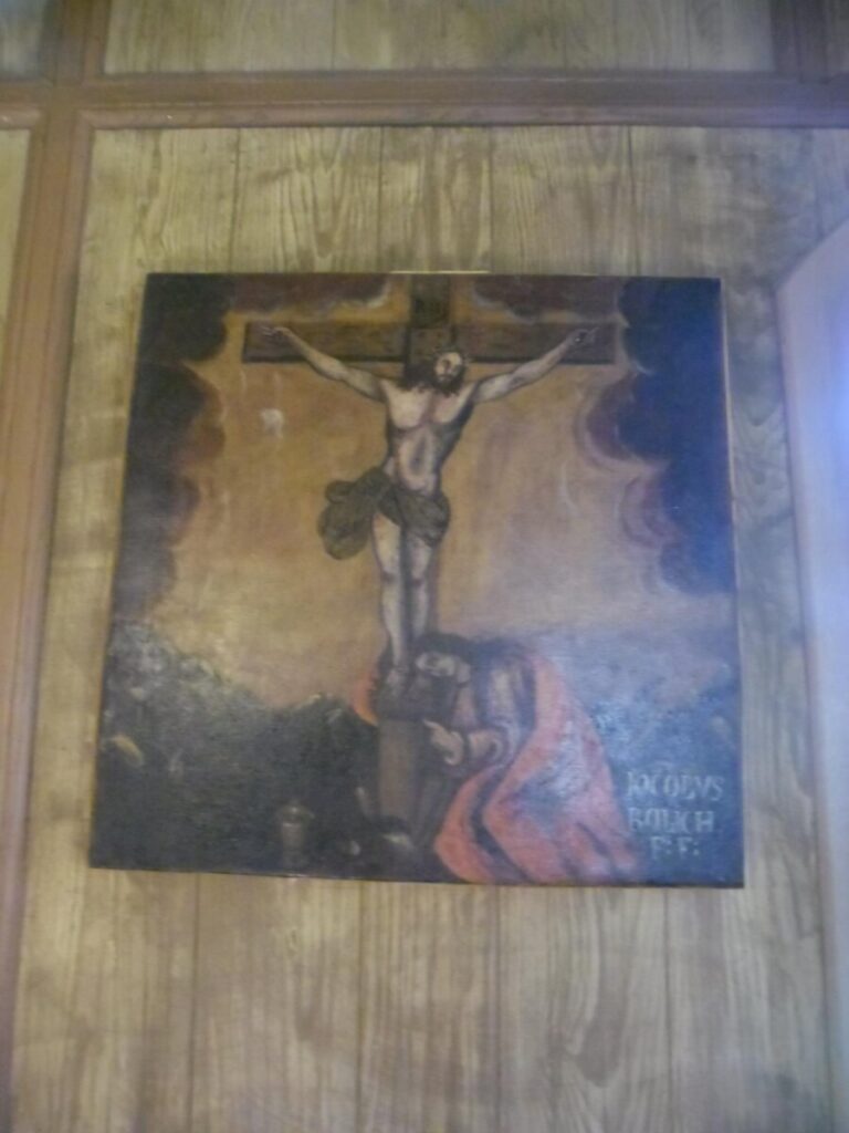 Ulje na platnu koje prikazuje Raspeće potječe iz XVIII. stoljeća i nalazi se na strani Poslanice. Prizor prikazuje Krista na križu okruženog teškim i tamnim oblacima i sv.