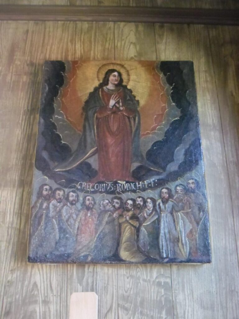 Slika Uznesenje Marijino iz XVII. stoljeća nalazi se na strani Poslanice i prikazuje Uznesenu u svojevrsnoj aureoli od oblaka i umanjenim promatračima apostolima. Izrađena je u tehnici ulja na platnu. Ovaj prizor kao da upotpunjuje zidni oslik Rastanka apostola koji su neposredno prije posljednji put okupljeni upravo u prizoru Uznesenja Marijina. Signatura na slici »GREGORIUS ROBICH F. F.« svjedoči o naručitelju koji se spominje u crkvenim računima 1693. godine, ali ne i o autoru. Povjesničari umjetnosti upozoravali su na loše stanje ove slike, tako primjerice Đurđica Cvitanović (2008. [1974.]) upozorava: »Slika Majke Božje s Apostolima, potpisana od Jurja Robića, koji je spomenut 1693. u crkvenim računima, u tako je lošem stanju da se ne možemo snaći.« a Mirjana Repanić-Braun (1988.) piše: »Boja je napucala i ljušti se, a uočljiva su mehanička oštećenja platna.« Na sreću, slika je restaurirana i nedavno vraćena u kapelu.