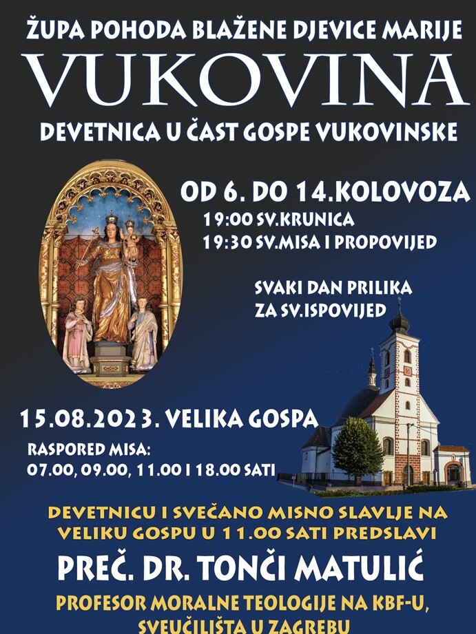 Na blagdan Preobraženja Gospodinova počela devetnica u Vukovini