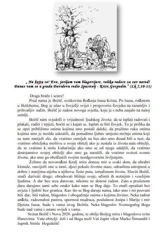 „Ne bojte se!“ – božićno pismo župnika i kapelana vjernicima
