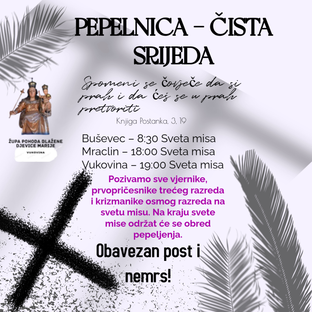 Preslavni i Trojedini Bože, dok ulazim u ovo korizmeno vrijeme, cijelim srcem priznajem svoje grijehe i kajem se. Molim Te, budi milosrdan prema meni, grešniku. Pomozi mi da ova korizma bude istinsko vrijeme pokore kako bi moja duša bila spremnija primiti Te ovog Uskrsa. Isuse, uzdam se u Tebe.