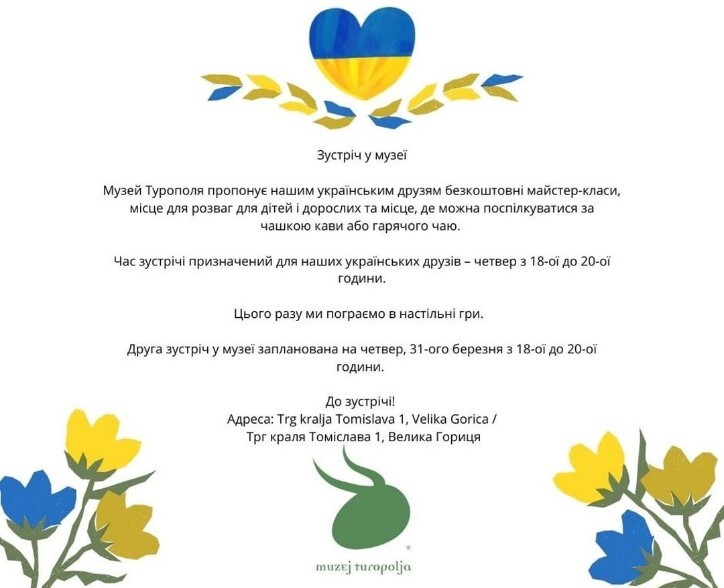 Jedan dio žena i djece smješten je u Velikoj Gorici, a Muzej Turopolja organizirao je radionice i igraonice za djecu iz Ukrajine. Kako smo u preduskrsnom vremenu djeca su na radionicama ukrašavala jaja – pisanice.