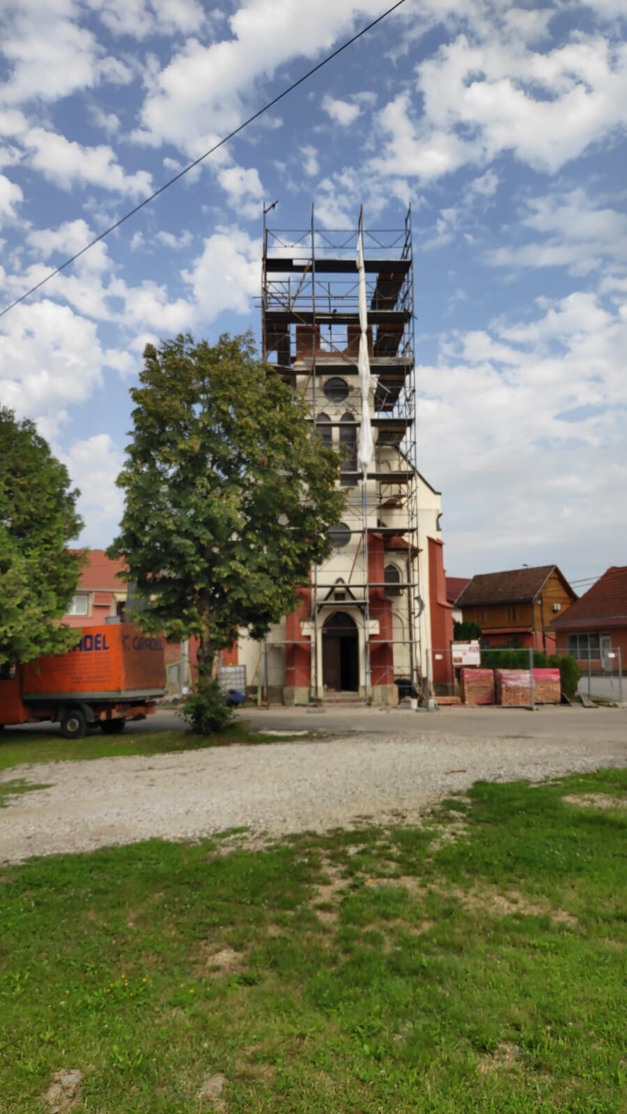 Radovi na obnovi crkve sv. Vida, oštećene u potresu, ne jenjavaju usprkos vrućinama i sezoni godišnjih odmora. Trenutno su aktualni radovi na zvoniku koji se izvode ojačani modernim tehnologijama i prema suvremenim uzusima struke. Sretnicima koji svakodnevno prolaze uz nju dovoljno je skrenuti pogled prema nebu da bi vidjeli kako zvonik svaki dan pomalo raste, za one manje sretne donosimo nekoliko fotografija.