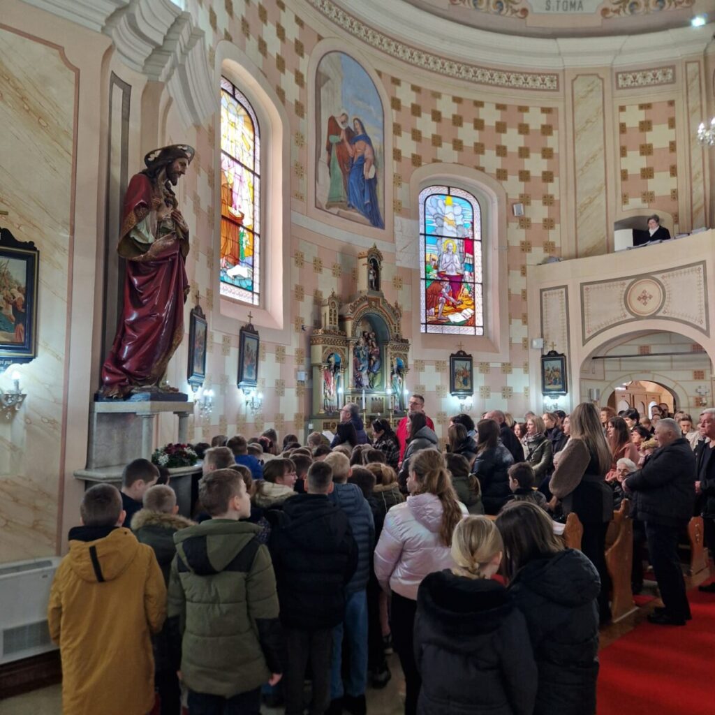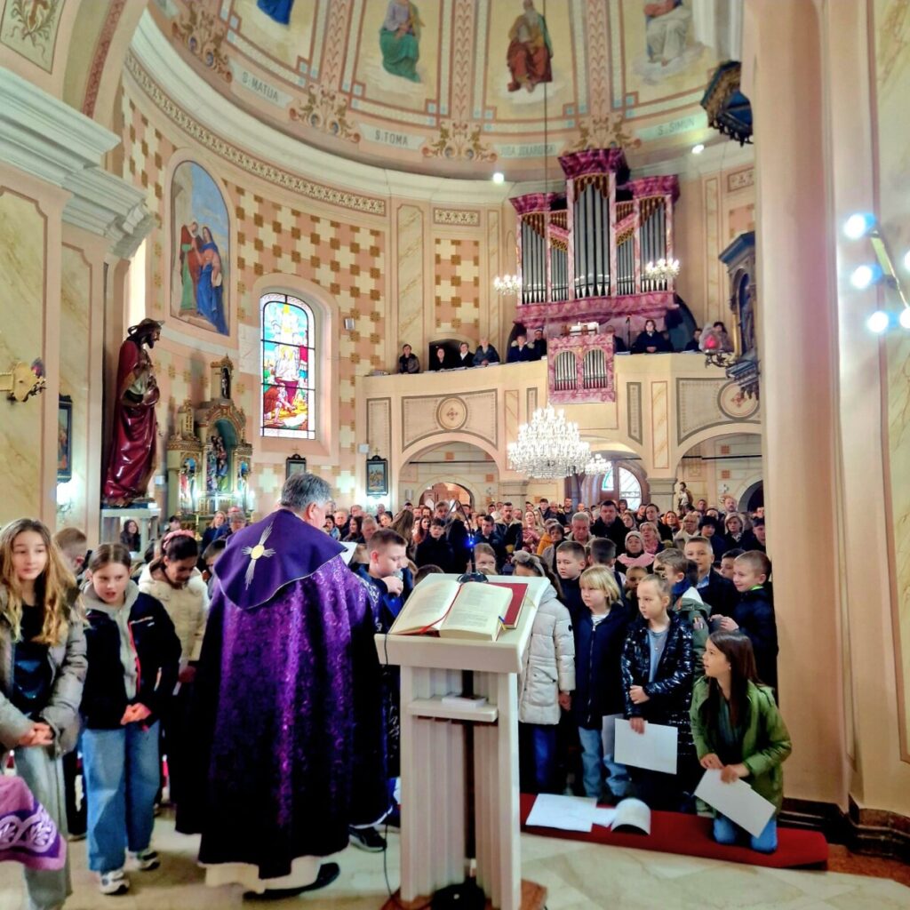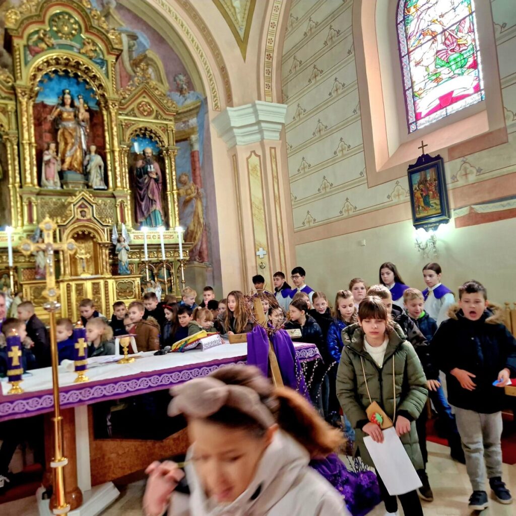 Na Prvu korizmenu nedjelju svetu misu predvodio je župnik vlč. Siniša Hegedušić, a prvopričesnici su aktivno sudjelovali čitajući postaje križnoga puta – svatko po jednu postaju.