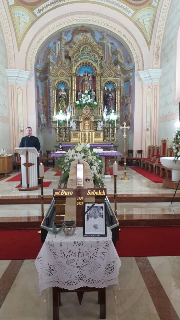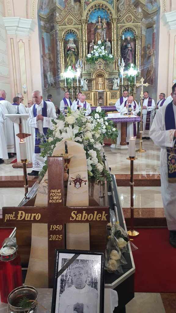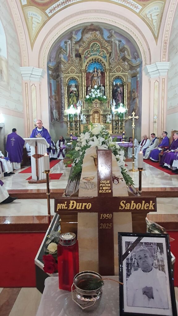 Na kraju svete mise, dok su pripadnici DVD društava iz naše župe stajali u počasnoj straži, tijelo pokojnog prečasnog Đure Saboleka ispraćeno je na mjesno groblje, u svećeničku grobnicu koju je sam dao urediti za svoje prethodnike i nasljednike. S vjerom u uskrsnuće i zahvalnošću za njegov život i služenje, okupljeni su se oprostili od svećenika koji je više od tri desetljeća bio duša župe Vukovina – pastir, učitelj i prijatelj svima.