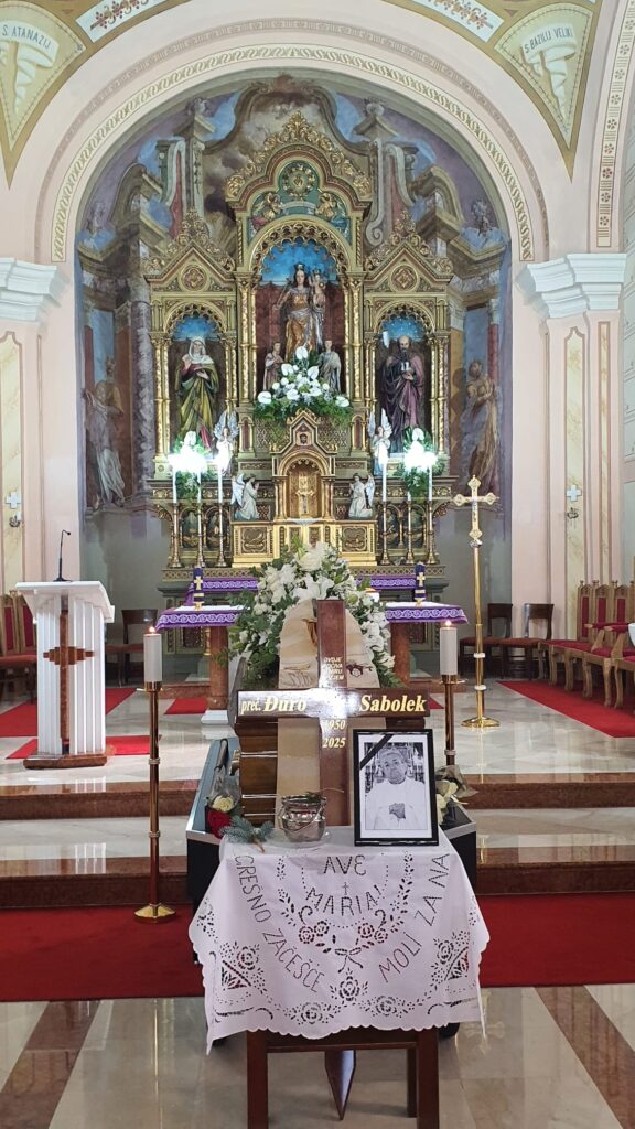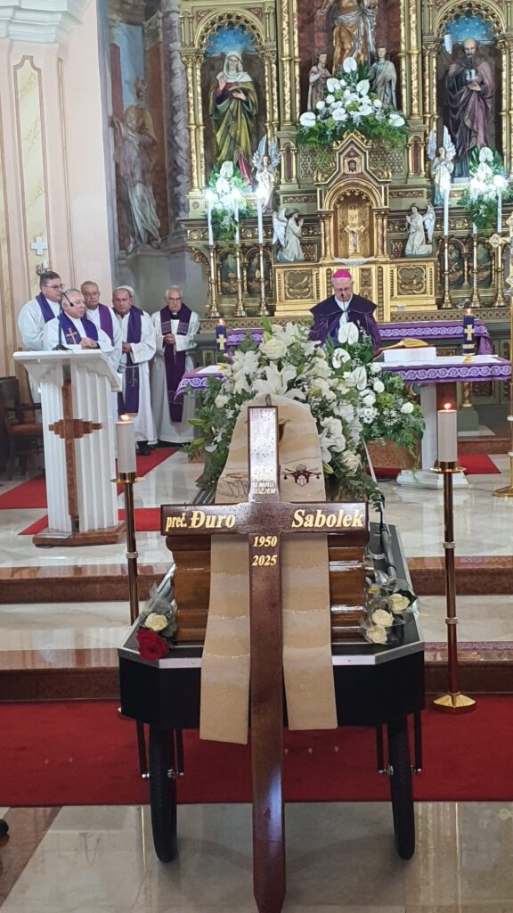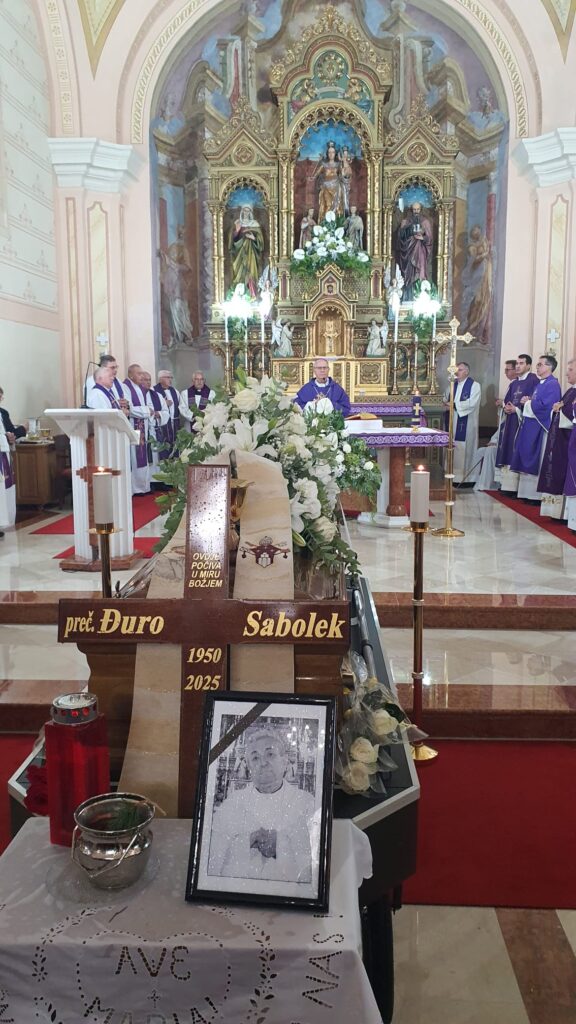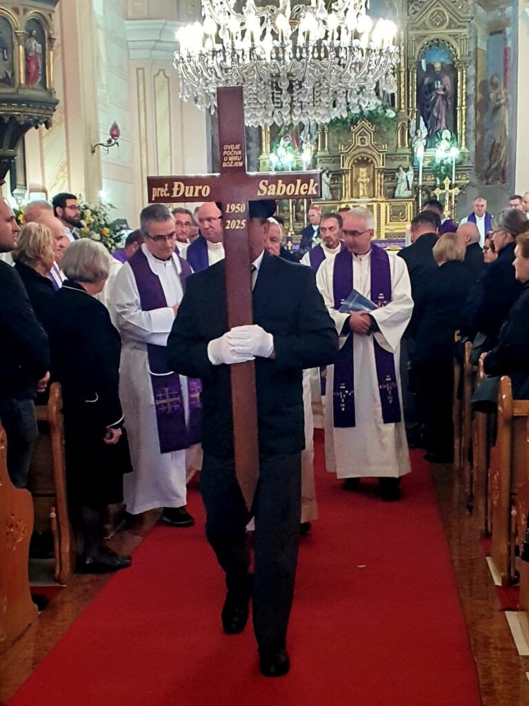U ime svećenika Velikogoričko-odranskog dekanata, dekan preč. Norbert Koprivec zahvalio je pokojnom Đuri na dugogodišnjem doprinosu zajedništvu i životu dekanata. Istaknuo je da je vlč. Sabolek bio ne samo suradnik nego i uzor starije svećeničke generacije – svećenik koji je znao spojiti ozbiljnost u službi s jednostavnošću i blizinom prema ljudima. Prisjetio se brojnih dekanatskih susreta i duhovnih obnova na kojima je vlč. Đuro uvijek donosio mir i mudrost, ali i zdravi humor koji je znao razvedriti svakoga. „Đuro je bio svećenik koji je znao što znači ostati vjeran – vjeran Crkvi, svom narodu i svećeničkom bratstvu. Svojim je primjerom mnogima bio poticaj i svjetionik u teškim vremenima“, rekao je dekan Koprivec, dodavši da iza njega ostaje djelo koje će trajno svjedočiti o njegovoj ljubavi prema župi i svećeničkom pozivu.