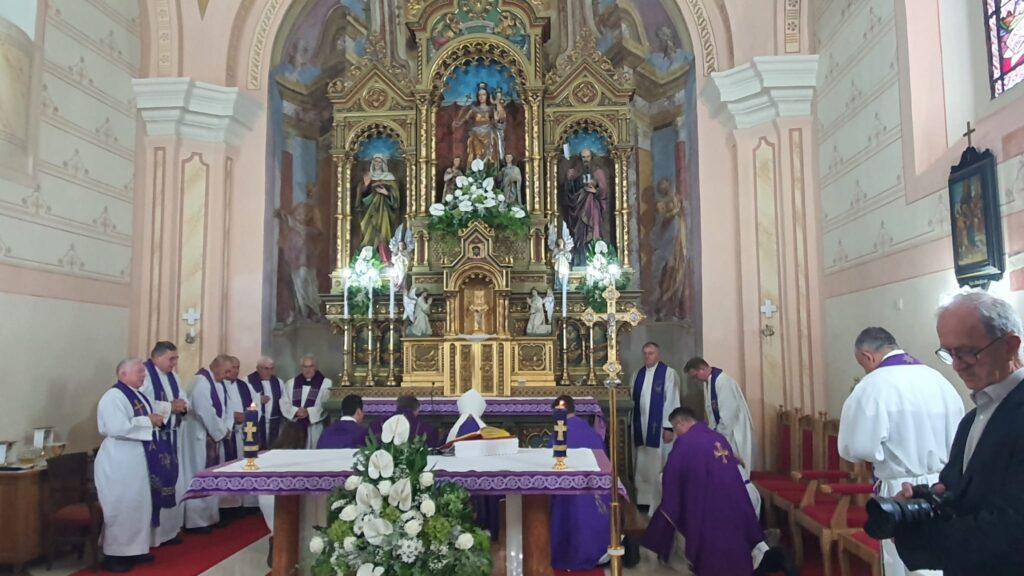 U crkvi Pohoda Blažene Djevice Marije u Vukovini danas, 9. listopada, održan je ispraćaj na vječni počinak dugogodišnjeg župnika, prečasnog Đure Saboleka. Od pokojnog vlč. Đure opraštali su se mnogi vjernici; njegovo tijelo bilo je izloženo pred oltarom već od 11 sati, upravo u crkvi u kojoj je punih 37 godina služio kao župnik. Svetu misu zadušnicu, u zajedništvu brojnih svećenika, predvodio je pomoćni biskup zagrebački mons. Mijo Gorski. Uz sadašnjeg župnika vlč. Sinišu Hegedušića, ispraćaju su nazočili i vlč. Ivan Vučak, svećenik iz Vukovine na službi u Krašiću, vlč. Domagoj Topić, tajnik nadbiskupa Kutleše, te dekan Velikogoričko-odranskog dekanata vlč. Norbert Koprivec, župnik župe Navještenja BDM u Velikoj Gorici, i mnogobrojni svećenici. Na ispraćaju su se okupili brojni vjernici, rodbina, prijatelji i župljani koji su u vlč. Đuri prepoznali svoga pastira i duhovnog vođu.