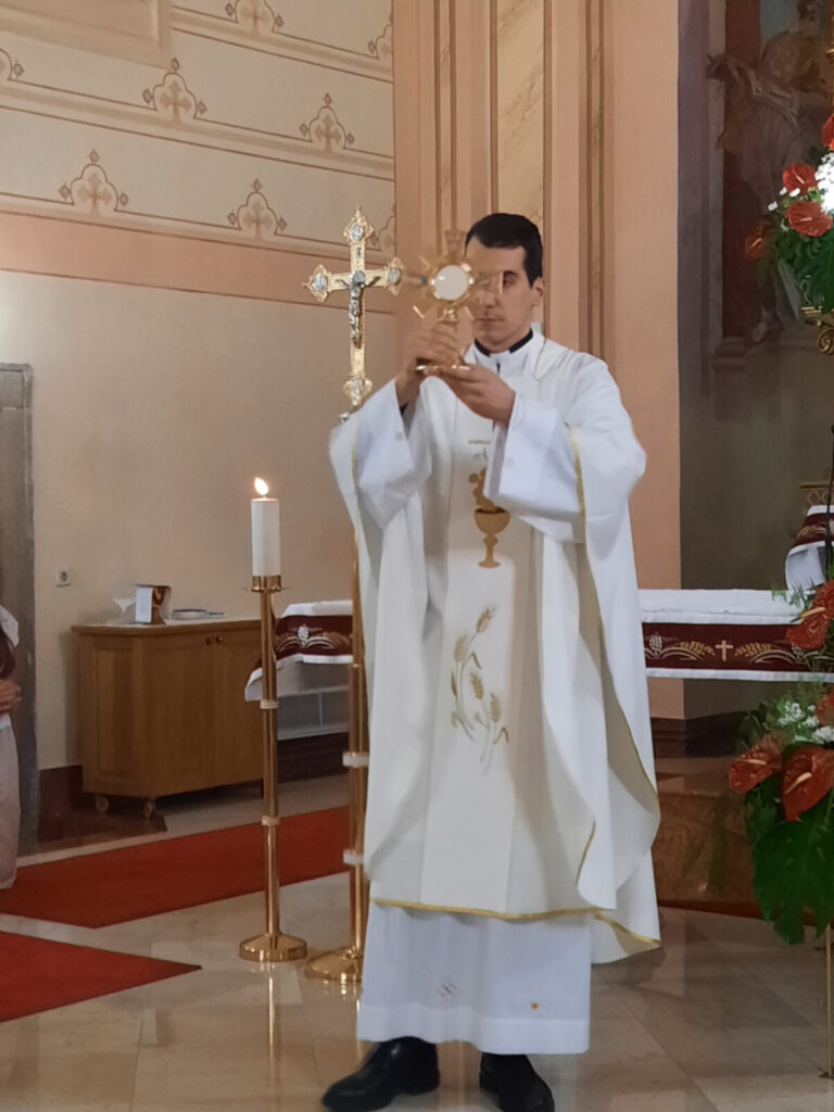 – To je najveći dar uz život vječni kojeg nam je podario naš Bog: podario nam je sebe, samoga sebe, jer se odlučio žrtvovati poradi nas. Isus nije došao dokinuti Stari zavjet nego ga dopuniti. On uzima na sebe teret našeg grijeha, On uzima na sebe našu smrt, On uzima na sebe našu muku. Ali, zapitajmo se sami, koliko u toj hostiji mi vidimo živoga Boga. Vidimo tijelo Kristovo. Ili to već primamo po nekom defaultu. Što je i razumljivo, jer smo ljudi, ali da bi živjeli sakramentalni život, da bi se približili Bogu, treba nam jedan duhovni, intelektualni napor. Stalno si posvješćivati da primamo tijelo Kristovo. Da primamo živoga Boga. Moj Krist sada silazi na ovaj žrtvenik i tu je među nama. Ne postoji ni jedna religija, nijedna vjera, gdje se Bog žrtvovao, gdje se dao čovjeku zauvijek. S druge pak strane mi se toga Boga ne trebamo bojati. I to je ljepota te očinske ljubavi, te prijateljske ljubavi, te prijateljske ljubavi s Njime. On prolijeva svoju krv za mene i za tebe, On daje svoje tijelo za mene i za tebe. Dozvolimo si da nam ova Tjelovska procesija ne bude samo još jedan trenutak na suncu i vremenu, nego trenutak živoga Boga koji je s nama u našem životu, koji je prisutan u našem mjestu, koji nam se dao. I dozvolio da ga častimo u Presvetom oltarskom sakramentu. Dozvolimo si taj trenutak blagovanja toga tijela i radosti u svome srcu. Da se vidi na nama da smo blagovali živoga Boga!