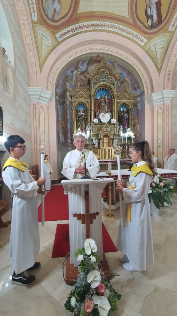 Treći dan devetnice u čast Pohoda Blažene Djevice Marije u Vukovini započeo je uvodnim pozdravom župnika vlč. Siniše Hegedušića, koji je srdačno zahvalio okupljenim vjernicima i hodočasnicima na odazivu. „Hvaljen Isus i Marija! Dragi župljani, draga braćo i sestre, dragi vjernici i dragi hodočasnici, poseban pozdrav upućujem vama koji ste i danas stigli pješice, što nas posebno raduje. Dok smo molili pobožnost krunice, mogli smo vidjeti kako lijepo ulazite u našu župnu crkvu noseći križ i pozdravljajući našu Nebesku Majku pjesmom“, poručio je župnik.