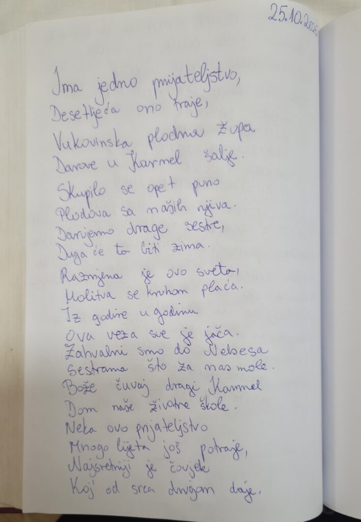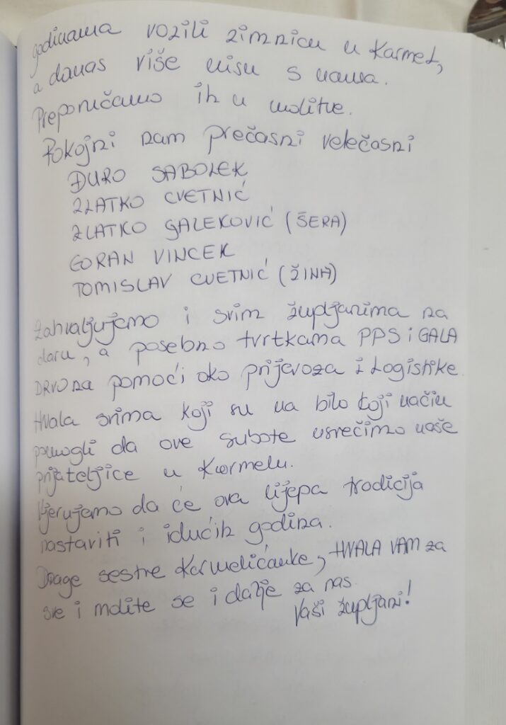 Vjerujemo da će se ova lijepa tradicija nastaviti i idućih godina, te zahvaljujemo sestrama Karmelićankama koje u tišini Karmela svakodnevno mole za nas i cijelu župnu zajednicu.