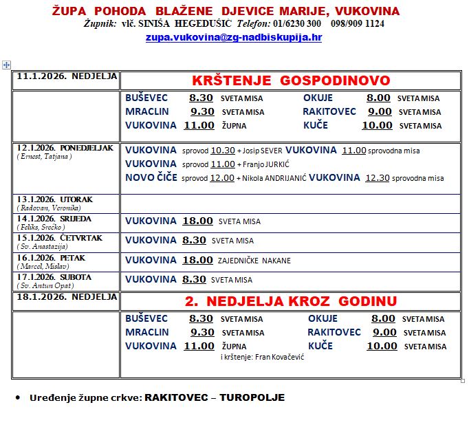 Kapelan vlč. Marko Šimundić predvodio misno slavlje na svetkovinu Bogojavljenja u Vukovini