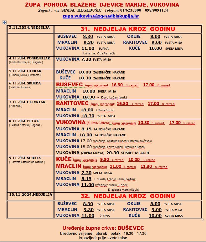 Dostupan je novi župni listić od 3. do 10. studenog 2024. s raporedom misa, vjeronauka i ostalim informacijama.
