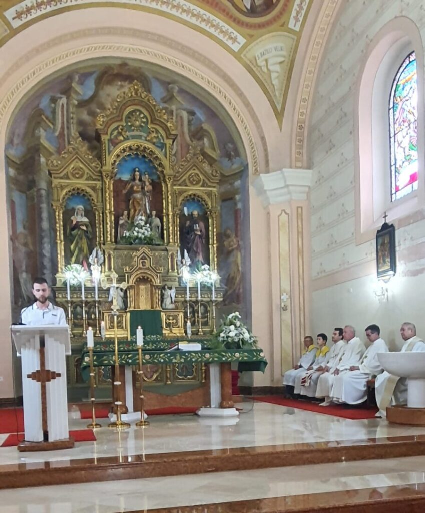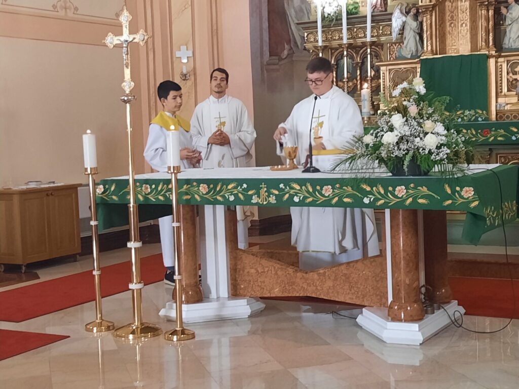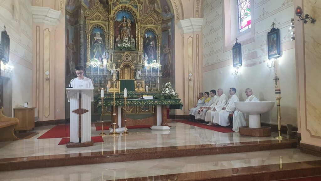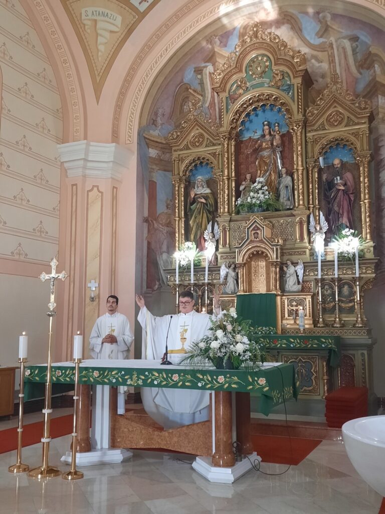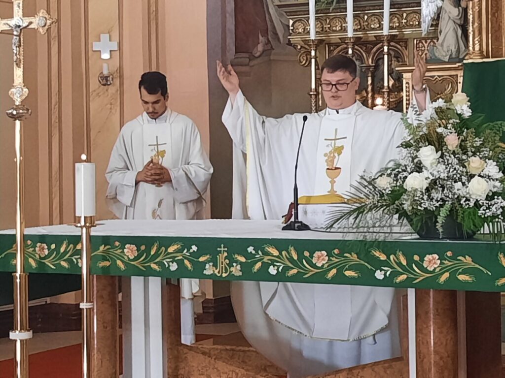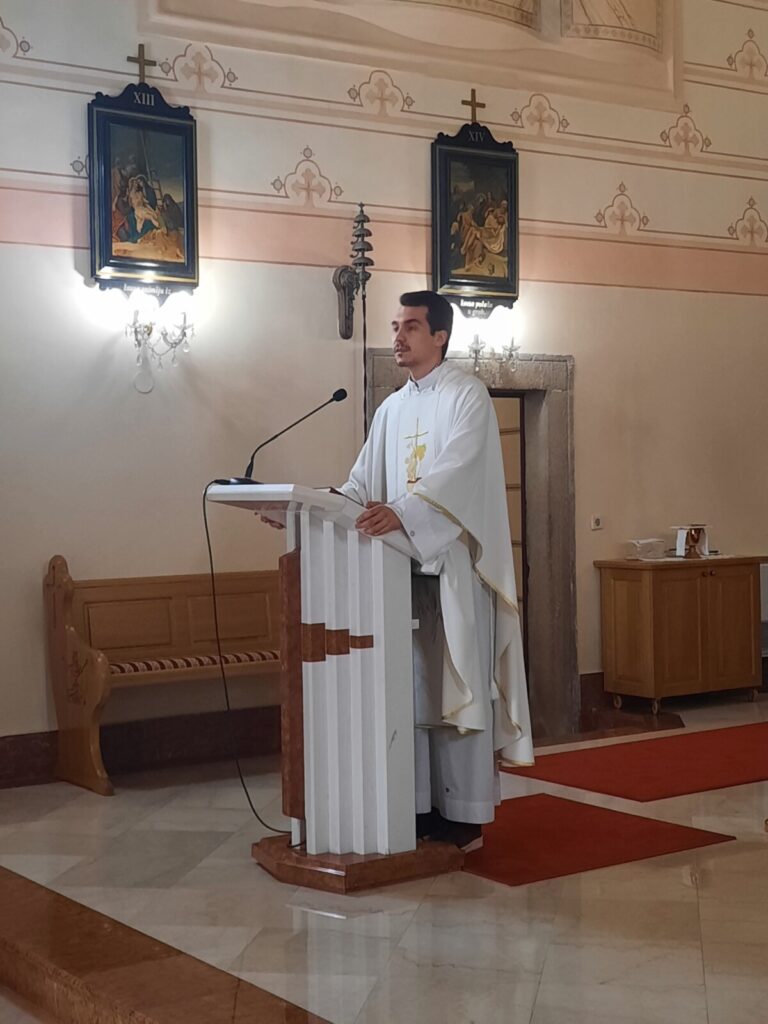 – Neka današnji dan bude poticaj svima vama, a i meni samome, da svatko od nas proba ovih 45 jedno minuta u sabranosti i iskreno Bogu zahvaliti na tome što svakodnevno primamo. Danas je vaše župno klečanje čime na posebni način pozornost stavljamo na svetu Euharistiju. Kroz povijest od samih početaka Crkva je iznimnu pažnju predavala gozbi lomljenja kruha. I u današnjem evanđelju vidimo poznatu scenu Posljednje večere kada je uspostavljena Euharistija. Ovo je moje tijelo, ovo je moja krv, riječi su koje i dan danas odzvanjaju u svim crkvama svijeta. Riječi su to koje nas podsjećaju na jednu jednostavnu stvar: kruh i vino na oltaru uistinu postaju tijelo i krv Kristova. Nemojmo se zavaravati, nije to simbolika. To je uistinu pravo tijelo i prava krv Gospodina našega Isusa Krista – istaknuo je u svojoj propovjedi na poslijepodnevnoj misi mladomisnik, velečasni Antonio Štengl, koji je 22. lipnja ove godine zaređen u crkvi Svetog Ivana Pavla XXIII. u Dubravi. Na kraju mise vlč. Antonio je vjernicima podijelio svoj mladomisnički blagoslov.